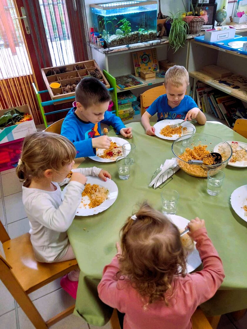 Gyurmázás, varrás, állatgondozás, kert, sok mozgás, udvari játék, kenyérsütés, közös reggelik, játék a csoportszoba kuckóiban, barátok, sok-sok élmény és nevetés – így telik nálunk egy átlagos nap.